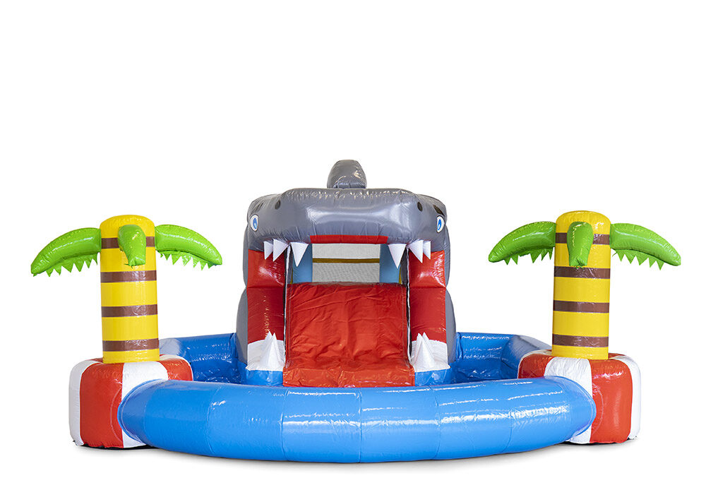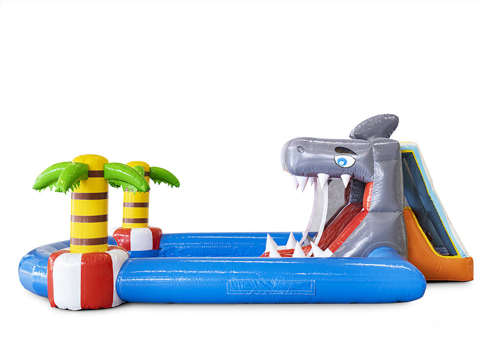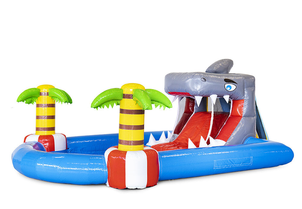 Unsere Wasserrutsche Hai ist eine Hüpfburg für die heißen Tag. Diese Hüpfburg überzeugt durch die vielseitige Einsatzmöglichkeit. Bei sommerlichen Wetter, freut man sich über eine kühle Erfrischung und sonst über ein tolles Bällebad. Fröhliche Farbkombination. Unsere Wasserrutsche Hai kann z.B. auf private Feiern, Straßenfesten oder in Indoor Spielhallen verwendet werden.